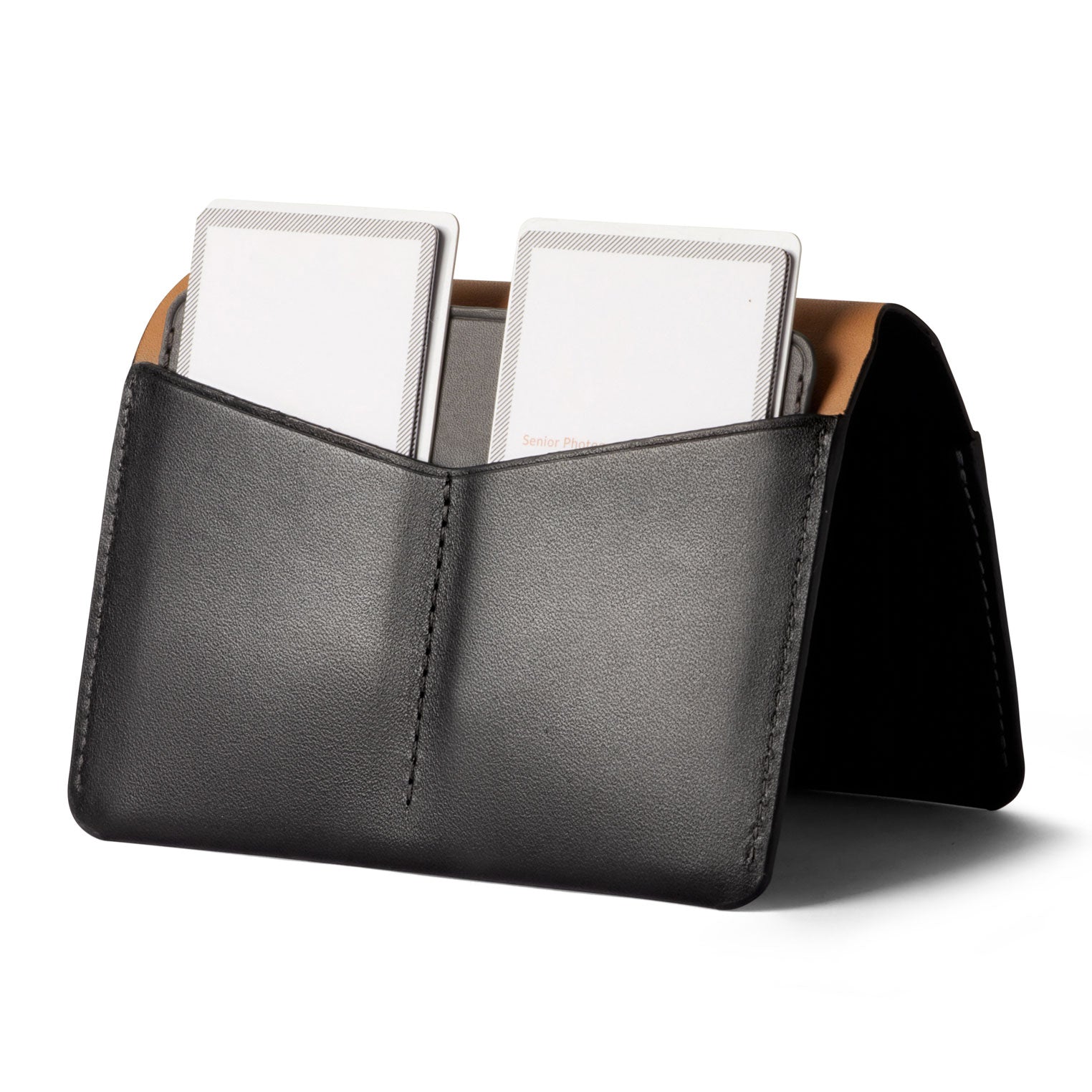 • Hidden flap for folded bills and receipts