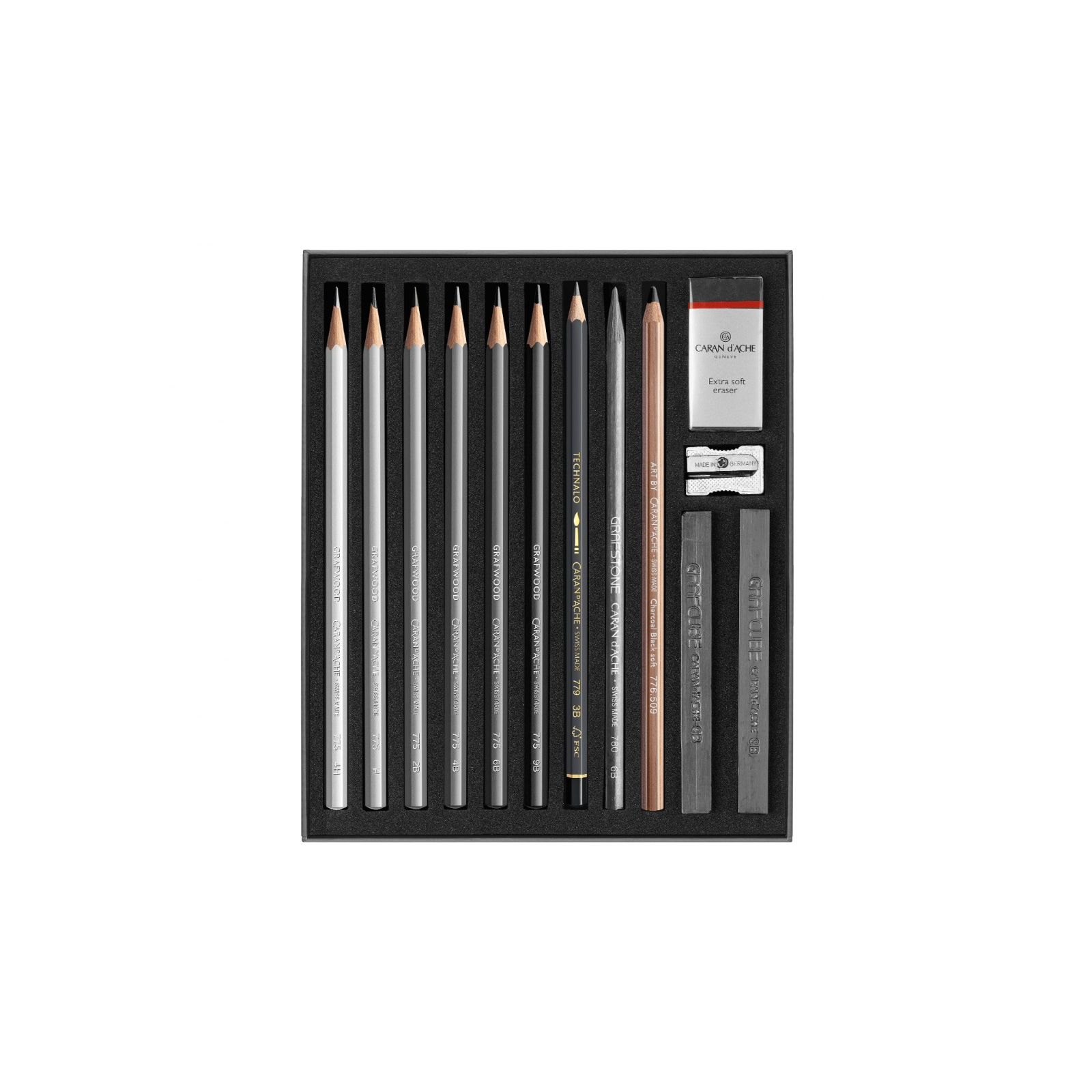Each product in this assortment meets the highest standards of quality, perfect for live model studies, shading, and intricate sketches. The complementary artistic products included provide everything you need for detailed illustrations, from versatile pencils to rich charcoal. Whether you're a seasoned artist or just starting, this sketching assortment empowers you to bring your visions to life with precision and style. Elevate your artistic journey with Caran d'Ache!